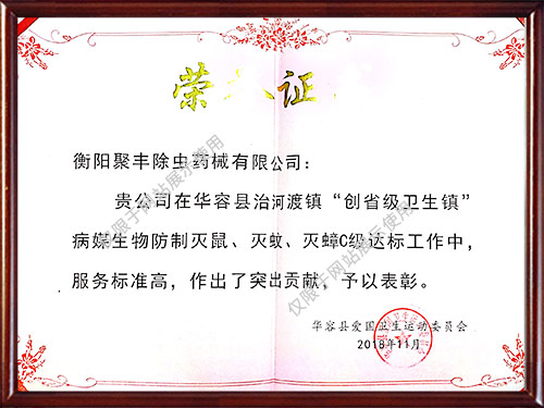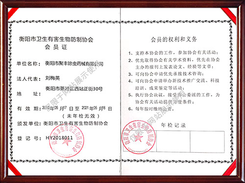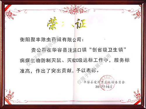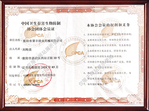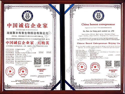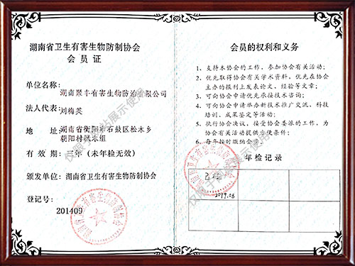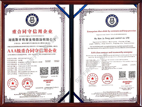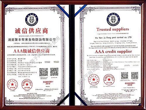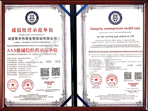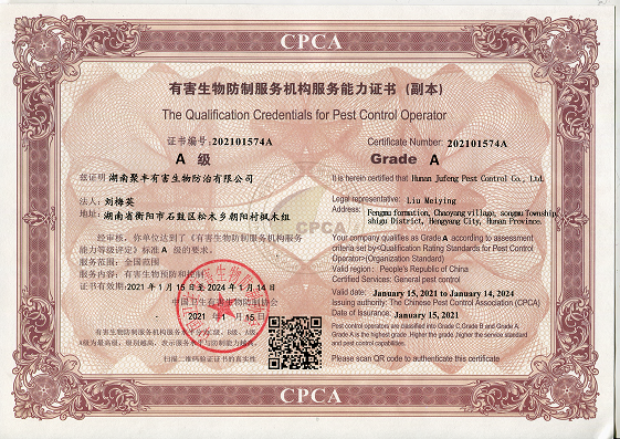公司曾獲得多種榮譽(yù)資質(zhì)證書,所有施工人員經(jīng)過專業(yè)培訓(xùn)且經(jīng)過國家相關(guān)部門考核認(rèn)證,能夠為廣大客戶提供一流的除蟲技術(shù)服務(wù),為保障客戶擁有一個健康、清潔、安全、舒適的工作和生活環(huán)境提供了保障。